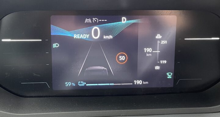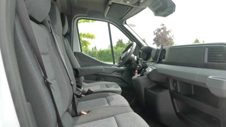 Vi har gennem årene sagt mange pæne ting om indretning af førerpladsen, og det gør vi også dennegang, men vi er ikke overvældet af begejstring. Det er, som om der er gået lidt sparemode i systemet, det kunne se ud som om et par regnedrenge har blandet sig i tilblivelsen, der mangler de sidste logiske ting i indretning, det er også begyndt at knibe med materialekvaliteten, og når vi med meget jævne mellemrum kører firmabilen (Renault Master) med de-luxe sæde, kan vi godt drømme om den siddekomfort, vi kan hente i firmabilen, frem for i en standard Interstar/Master, og måske har besparelsen i kabinen noget at gøre med de ekstra tiltag, man har foretaget, for at give flest mulige kilometer på en opladning, og selvfølgelig flest mulige kilometer på en liter diesel, for karosseriet er det samme.
