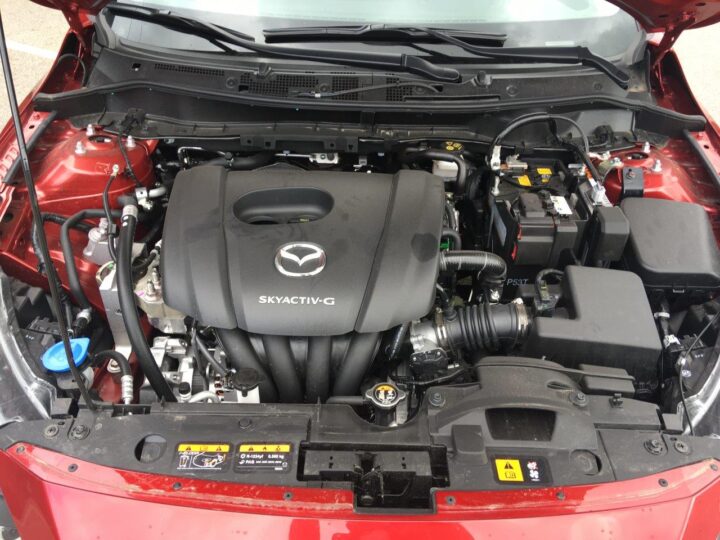 Næste punkt er det lige så traditionelle. Motor og gearkasse. Vi starter med at beklage, at Mazda har sagt farvel til automatgear i Mazda2. Vi tror det koster kunder, men for Mazda handler det om CO2, for en bil med manuelt gear udleder mindre CO2, med mindre man har en meget moderne type gearkasse, og sådan en tingest har Mazda ikke, – derfor den lidt triste beslutning.