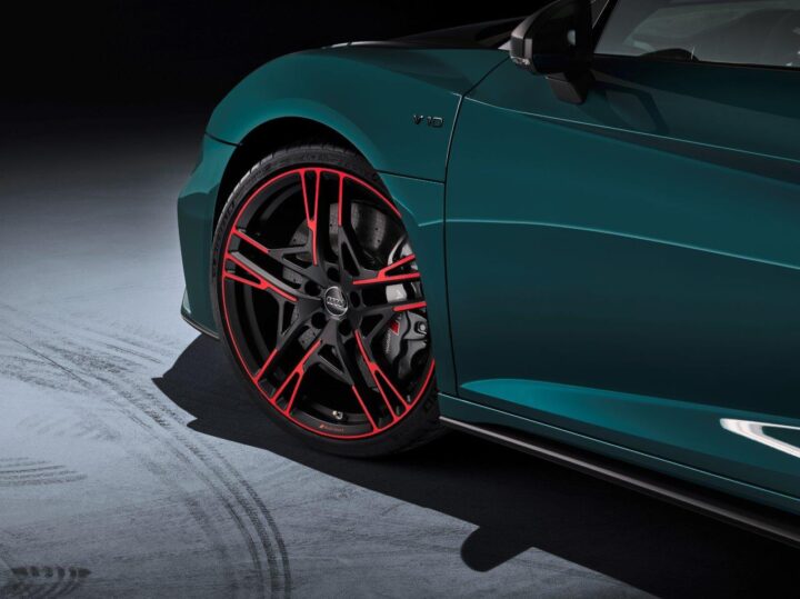 Den meget specielle grønne farve på sportsudgaven af R8 hedder tiomangrøn. Bag den særlige farve finder man en letvægts racer omvendt til civilt brug, det er den kendte V10 motor vi finder midt i det grønne uhyre, og vi kan allerede nu tage pippet fra de fleste ved at oplyse, at prisen på den grønne A8 er 235.000 Euro, hvis man køber bilen i Tyskland.
