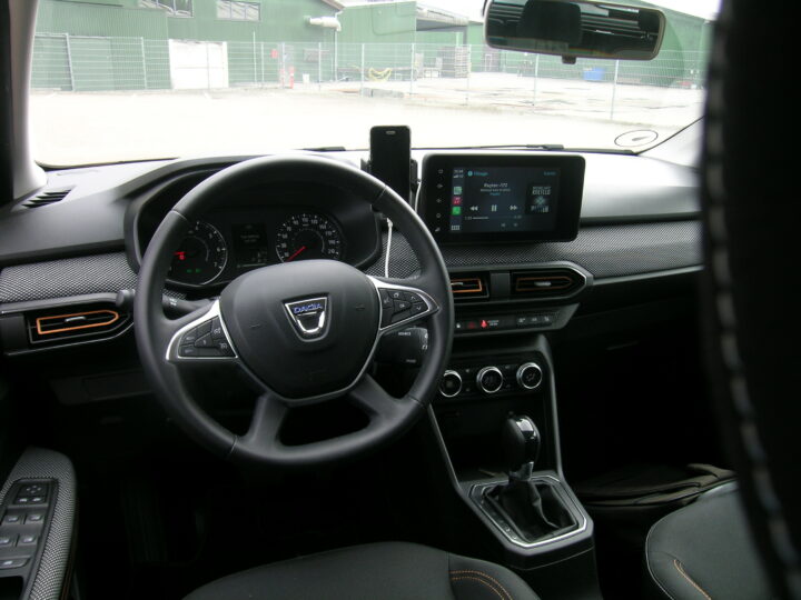 Førerpladsen i Sandero Stepway, hvor mange funktioner hentes fra den personlige snakkefon.