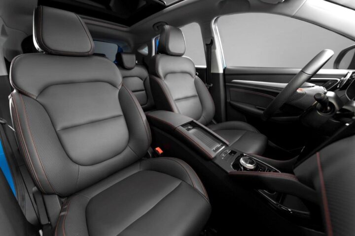 Det ligner dagens standard fra Kina. Gode sæder af typen læderstue.