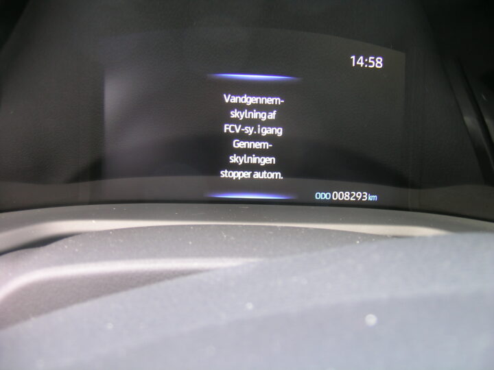 Vi bruger også et par linjer til at beskrive vores oplevelse med dagens tankstationer til brint. Da vi testede Mirai II var antallet af brintstationer reduceret til to i hele hovedstadsområdet. Første besøg ved det mindste anlæg var noget tvivlsomt. Vi kunne ikke tanke bilen til mere end lidt over halv tank. Helt præcis til 55 procent. Vi har senere fået at vide, at hvis man ankommer til tankanlægget kort tid efter en eller flere andre brintbiler har tanket, kan det knibe med at have tryk nok på systemet, og det fandt vi ud af ved næste besøg, hvor vi var på et betydeligt større og mere permanent anlæg, hvor vi uden problemer tankede til 100 procent, hvilket svarer til en rækkevidde omkring 600 km, før man igen skal bruge et par minutter på tankstationen.
