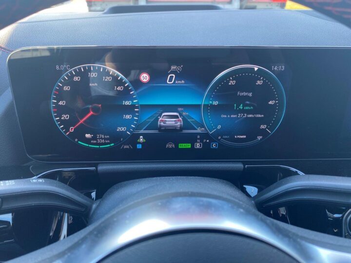 Testbilen lokker med 292 HK og en batteripakke på 66,5 kWh. Rækkevidden varierer noget, alt efter hvor man tjekker data, men Mercedes siger 411 km efter WLTP metoden, og så er det tilladt at spørge, om det er en god rækkevidde for en bil med en nypris på lige knap 460.000 kr før ekstraudstyr.