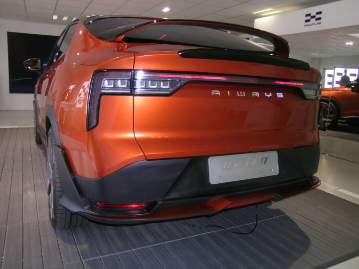 Det er ingen tilfældighed, at navnet Aiways træder så tydeligt frem på bilen. Fidusen er, at bogstaverne er hvide og med indlagt lys.