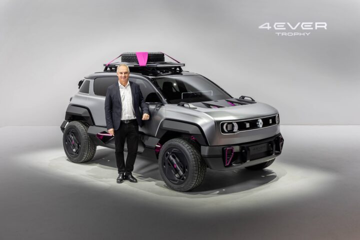 Nu følger Renault i van Deurs fodspor. På biludstillingen i Paris fremviser Renault et såkaldt koncept til en bil, der skal i produktion i 2024, og som ledetråd får vi at vide, at denne model hedder 4Ever Trophy, at alt det sorte ikke skal tages alvorligt, mens det lysere grå skulle være ganske troværdige elementer af den kommende produktionsmodel, som ganske givet vil blive udstyret med olympiske ringe og meget andet i forbindelse med det forestående OL i Paris 2024.