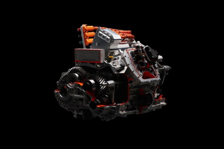 Den nye V12 lægger 825 HK ved 9250 omdrejninger. Rigtigt mange omdrejninger til en V12, som med garanti udsender et formidabelt brøl, når motoren yder sit bedste, men benzinmotoren skal nu assistance af hele tre el-motorer, så den næste nye Lamborghini er en hybrid.