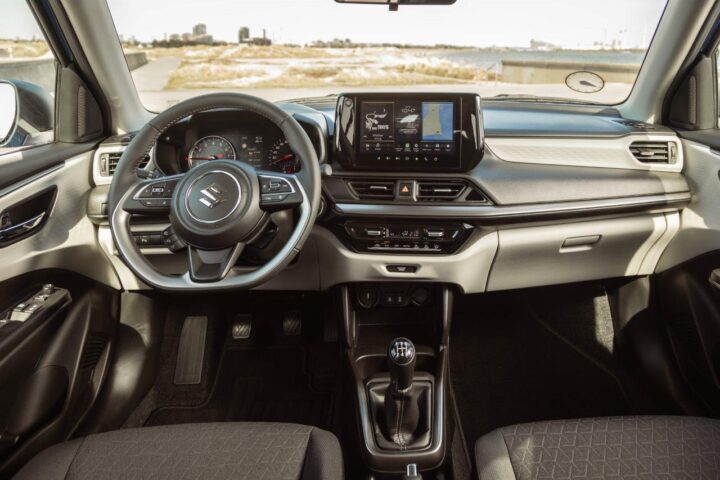 Alt er nyt, sæderne er opgraderet, der er kommet mere skærm i Suzuki, og så er det ingen overraskelse, at der er nye sikkerhedssystemer i Swift, vi kan nævne nødbremse, adaptiv fartpilot og linjevogter som nogle af nyhederne, mens det tilstødende motorsystem, mild-hybrid, ikke er en overraskelse i ny Suzuki.