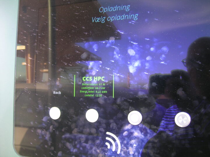Ladehastigheden svingede en del, her topper hastigheden med 66 kWh, og det er sjældent vi lader med den hastighed.