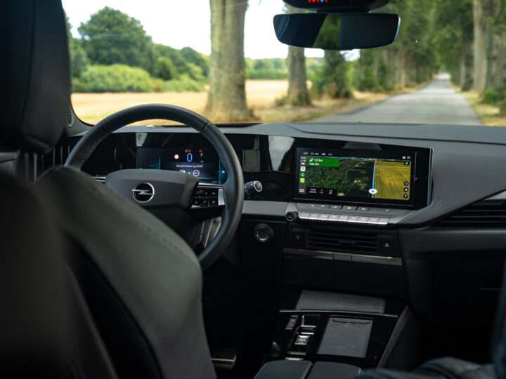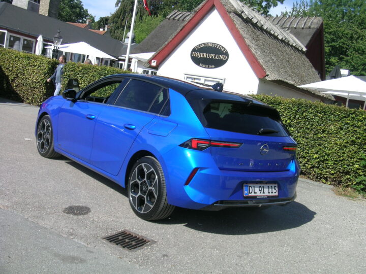 Vi har naturligvis ikke testet rækkevidde, sandt at sige går vi lidt forsigtigt rundt om alt det med el-priser netop nu, men Astra er ganske villig til at køre på el, når vi kører i hybrid indstilling, det er også en sjov gimmick at lyset i bilens instrumenter skifter til blå, når bilen kører på el, og nej, – der skulle ikke være noget politisk signal i de skiftende farver.