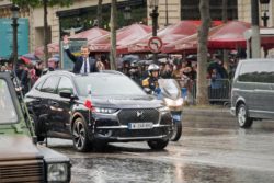 Frankrig har fået ny førstemand og ny førstebil. Upopulære Hollande, der sidst kørte Renault Espace, er udskiftet med Macron, der kørte sin første officielle tur i pis-øsende regnvejr i den nye DS 7 Crossback.