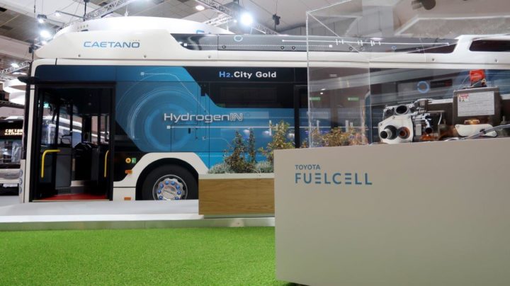Der er ikke langt fra tanke til realiteter. Sidste år købte Toyota sig ind i den portugisiske busvirksomhed Caetano, og et år senere har man vist den første europæiske bybus, der kører på brint.