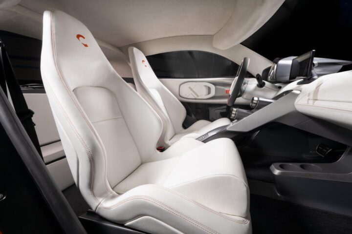 Med det udgangspunkt er det ingen overraskelse, at der er voldsom fokus på materialer både ud- og især indvendigt. Bilens to-farvede lakering med noget der næsten ligner frit valg og en kabine med sædemateriale, der er fineste, fine kvalitet læder, og ikke en gang husmands syntetisk genbrugsplast med tilsat duft af læder, instrumenter af samme kvalitet som vi ser i Bugatti, alt er gennemført og gennemdesignet, men vi ser også en svaghed hos Callum, for han er åbenbart ikke god til kontakter og knapper. Det kniber med at finde både form og placering, så i stedet har regnedrengene fået ret, og man nøjes med en trykfølsom skærm, som både er ganske lille set med dagens øjne, ligesom den lille skærm må hoppe og danse noget i landskabet, når man kører off-road. Skærm til denne type bil ligner alt andet end noget genialt, men selvfølgelig, – hvis designet er det overordnede mål, må man leve med skærmen, og glæde sig over resten, for Callum Skye er rullende lækkerier, til noget der ligner en million.