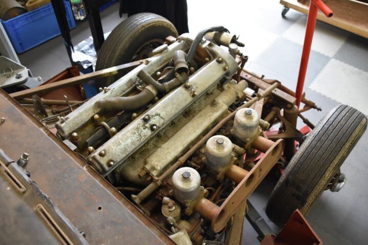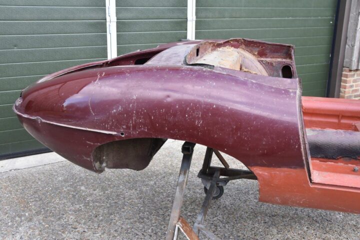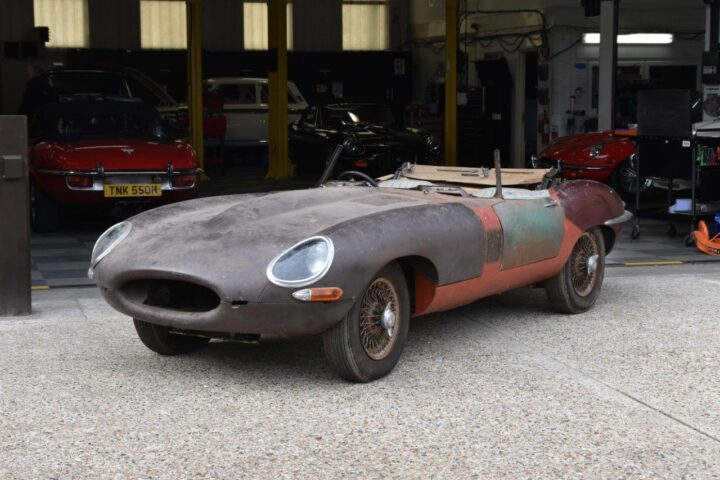 Denne E-type er ved at blive restaureret hos E-Type UK, der som navnet antyder er specialister i netop E-type, men denne model har en helt særlig historie.