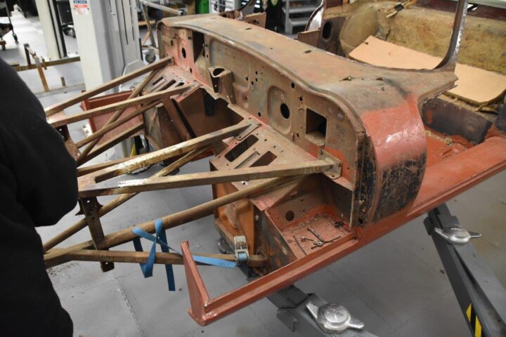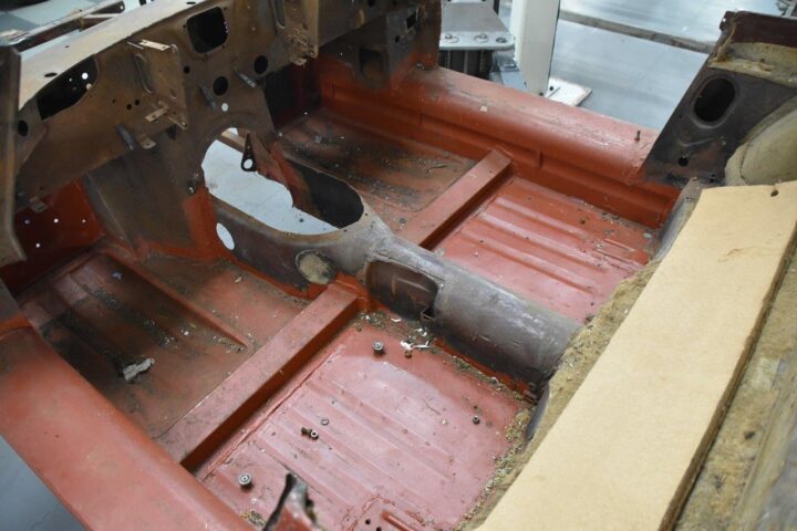 Bilen bliver totalt adskilt. Hvert eneste lille eller større angreb af rust blive udbedret, bilen bliver sand- , glas, eller blæst med nøddeskaller, så karrosseriet kan blive genopbygget helt fra bunden.