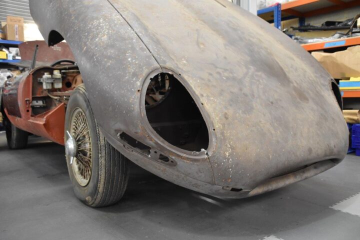 Originalitet er helt afgørende for prisen på ægte klassikere, og denne E-type bliver udelukkende restaureret med originale dele, og noget så usædvanligt som bilens originale benzintank, er i så god stand, at den overlever den gennemgribende restaurering.