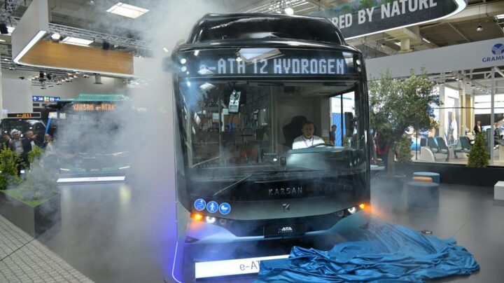 Tyrkiske Karson e-ATA slipper vanddamp ud fra den tyrkiske bybus, som er den næste bus der kører på brint.
