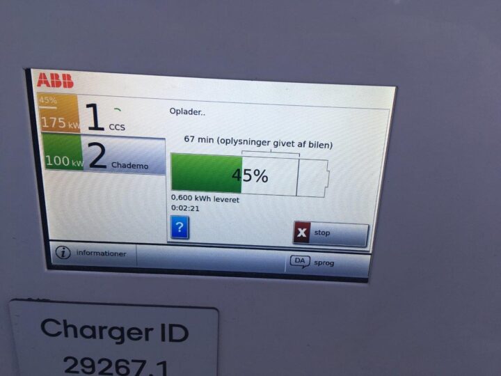 Vi lader på en af de største og på papiret hurtigste ladere med en kapacitet på 175 kW.