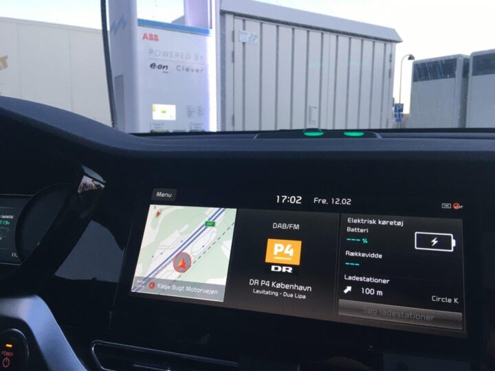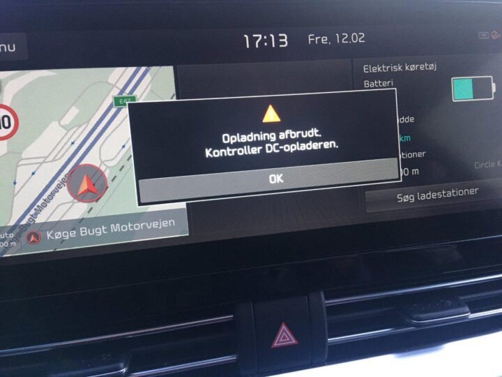 En god detalje hos Kia, den fortæller hvor du kan finde en ladestander, men her vil den have dig over på den anden side af motorvejen.