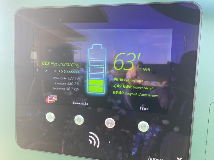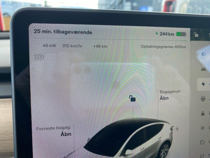 Vi lader med 46 kW, hvor vi burde lade med 150 kW, ligesom en Tesla Y tillader en ladestrøm på 250 kW.