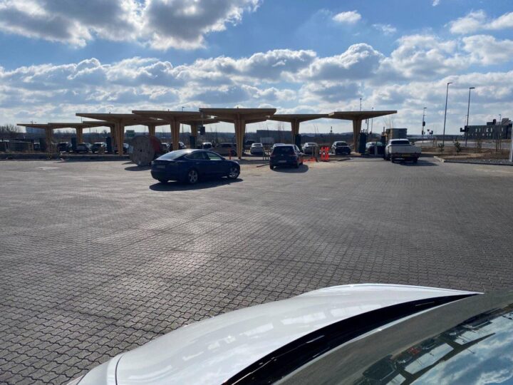 Et helt ny ladeanlæg er bygget som nabo til Teslas anlæg. Det nye anlæg er ejet af Clever, – og der er ventetid på en søndag. 16 biler kan lade samtidig på det nye anlæg.