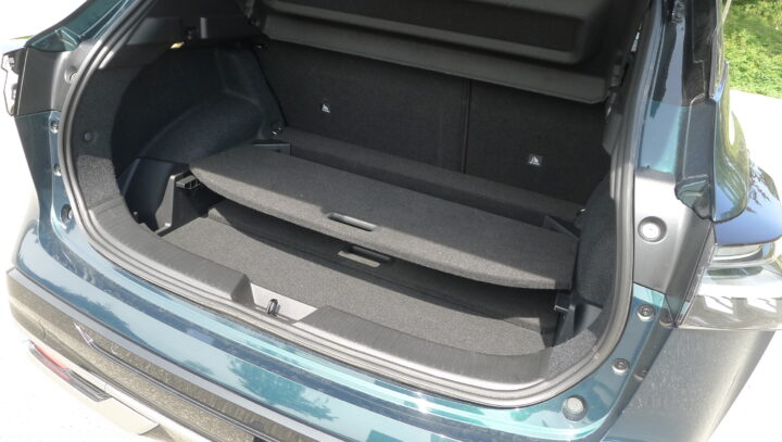 Rummeligt bagagerum med dobbeltbund, vel at mærke med en øvre plade der er ganske kraftig og dermed stabil.