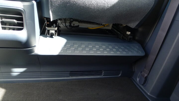 Hvis vi skal se efter de gode sider hos PV5, skal vi går på detaljejagt. Der er mange smarte små ting i PV5, et eksempel er en slags fodhviler ved bagsædet, Kia har indrettet en fodhviler oven på varmeristene, der sidder helt nede ved gulvet, vi er også ganske godt tilfredse med de oplukkelige sideruder i skydedørene, men vi har haft dem godt og grundigt i øjesyn, for hele det listesystem der sidder rundt om de små oplukkelige ruder, ser spinkelt ud, så hvad når de bliver slidt, -hvis de da slides, hvor løber regnvandet hen? I bunden af skydedørene?