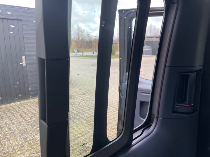 Oplukkelige sideruder i skydedøren, der havde en grim raslelyd, vi ikke kunne lokalisere.