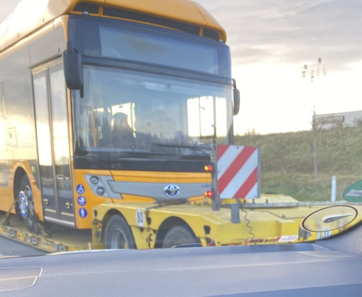 Toyotas brintbus fotograferet på vej til en anden hovedstad hvor man har en helt anden indstilling til kørsel på brint.