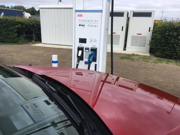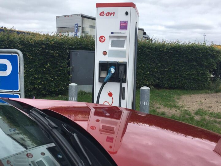 Masser af ladestandere fra flere udbydere, men Kuga PHEV bruger det meget almindelige type 2 ladestik, og det kunne vi kun benytte, hvis vi havde abonnement hos e-on, så vi fortsatte mod hovedstaden med tomme batterier, selv om vi havde en forberedt plan om at møde bygrænsen med fuldt opladt batteripakke, og køre så meget el-kørsel i byen som muligt.