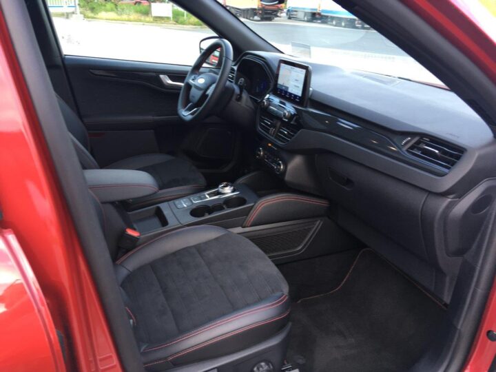 Kuga med ekstra elektrisk motor kører frisk frem med udstyr, så der er slet ikke tale om en sparemodel, ligesom ny Kuga er vokset med vigtige centimeter i forhold til den tidligere model. Denne forsigtige udvidelse giver en rigtig god oplevelse i kabinen, især på bagsædet er det plusser så det kan mærkes, mens den ekstra teknik har kostet lidt i bagagerummet, selv om benzintanken i PHEV modellen er 10 liter mindre end en standardtank i Kuga.