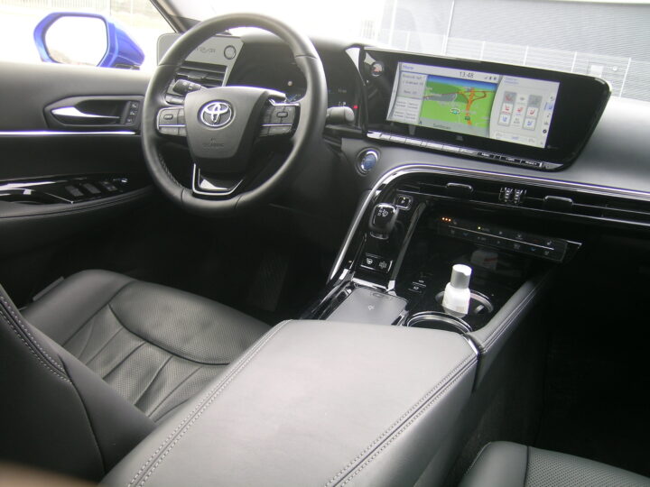 Typisk møder vi den produktkvalitet, vi kender fra Toyota, men der er gjort mere ud af materialer, det er lækkert at røre ved overfladerne, sæderne er fremragende, og hvis ikke der stod Toyota på bilen, kunne vi let blive fristet til at tro, at bilen var en Lexus, men det er måske fordi man har bygget en kvalitet Lexus, og kaldt bilen for Toyota, fordi det giver større opmærksomhed, at lave en brintbil der hedder Toyota.
