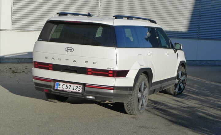 Der er permanent 4-hjusltræk på Santa Fe, gearkassen er ”kun” 6-trin, men netop antal af gear har ikke den store betydning, hvis elmotoren er kraftig nok, og det er den i Santa Fe, hvor man henter plus 300 Nm fra stående start, og totalt set fungerer Santa Fe glimrende i bykørsel, mens manglerne bliver lidt synlige, når vi kommer ud i det åbne landskab, og på den type asfalt, hvor man kan sætte tempo på køretøjet.