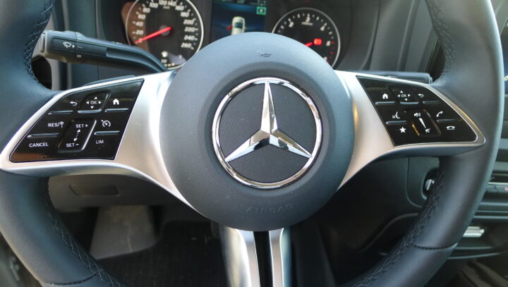 Vi har været efter det nye rat i Mercedes flere gange, og det gør det ikke bedre, at man rykket de små plader og knapper over i en håndværkerbil, for håndværkere har som bekendt lidt større hænder end frøken Jensen, der kører A-klasse på vej til kontoret.