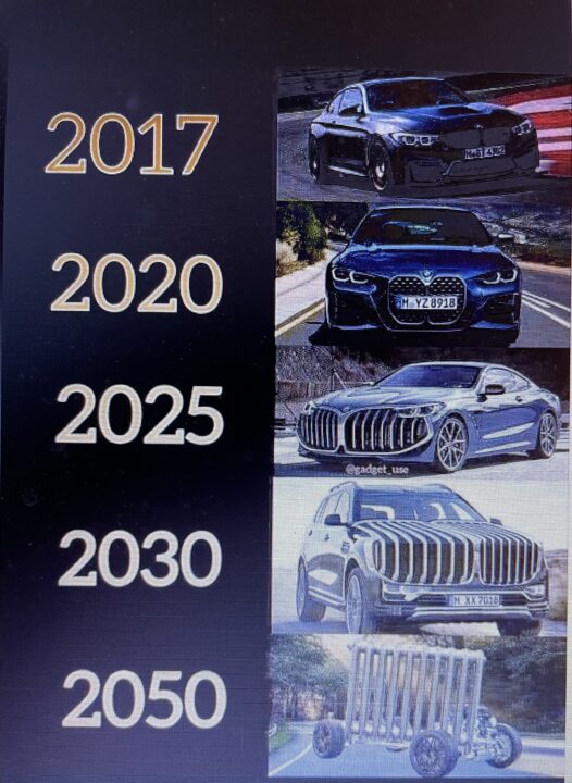 BMW har flere gange udfordret sine mulige købere, og lige nu er det den stadig større front der er til debat. Illustrationen er fundet i et debatforum.