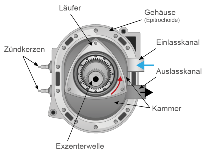 Wankelmotoren fylder mindre, kan lægges dybere i et motorrum og er rent teknisk så effektiv som en 2-takts motor.