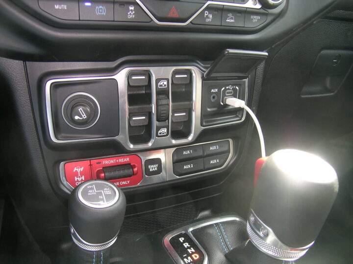 Ladestikket skal placeres forrest i Jeep Wrangler.