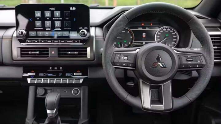 Tjek lige den førerplads. Bunkevis af knapper og skærm som hjælpefunktion. Vi er allerede stor fan af Mitsubishi.