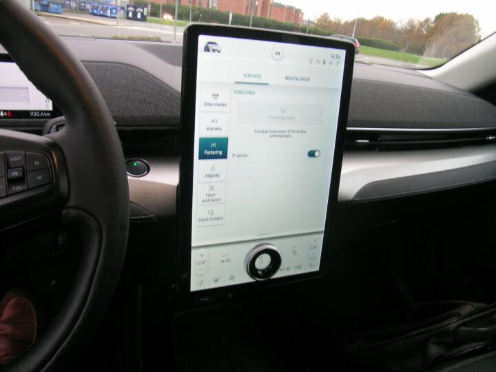 Indretning af Mach-E er som vi kender det fra Ford, vi bemærker den konstante udvikling af funktioner på den trykfølsomme skærm, ligesom vi bemærker, at bilens trailervægt ikke er noget at prale af. 750 kg som det bedste, og samme vægt gælder også, når traileren er uden bremser.