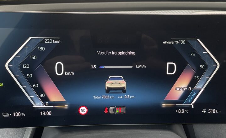 Testbilens egen forudsigelse af rækkevidde (518 km) ved 100 procent på batteriet, passer næsten fuldt og helt med vores beregning af den gennemsnitlige rækkevidde.