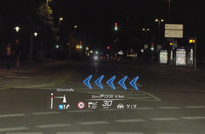 De intelligente forlygter kan også projicere signaler og advarsler foran bilen. Dertil en længere række informationer som head-up.