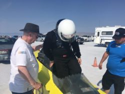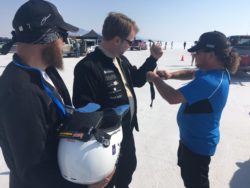 Visiret skal være foldet ned, og man sidder fastspændt i en 5-punkts sele. Kontrollører fra Bonneville efterspænder alle før start. Ingen må flagre rundt i bilerne.