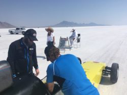 En ting er at sidde bag rattet når bilen bliver skubbet, noget helt andet er, når de 1250 HK for alvor begynder flytte sine mange kræfter ned i saltet, men første rapport fra Dennis Lindberg var meget positiv. Den er så let at køre, kunne Dennis fortælle efter første gennemløb. Den styrer meget bedre end nogen anden type lakester jeg har kørt, og den anelse affjedring der er i denne roadster, betyder, at den er i stand til at opsuge de mange små ujævnheder, der er overfladen på Bonneville.