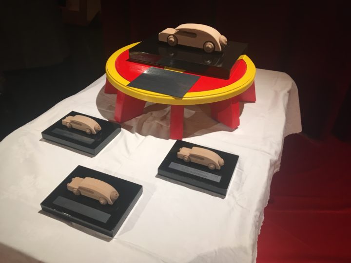 Det er disse trofæer der dystes om ved Årets Bil i Danmark. Den store til Årets Bil, de mindre til hæderspriser fra Motorjournalisternes Klub. De tre blev i år tildelt Peugeot 508 for design, Kia e-Niro og Hyundai Kona for innovation og Ford Fiesta ST for køreglæde.