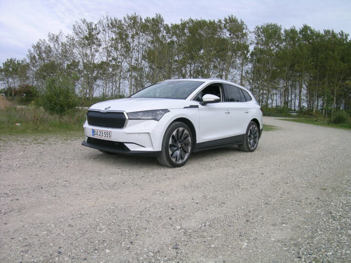 Skoda Enyaq er i nær familie med VW ID.4. Ingen overraskelse på den konto, teknikken har vi været forbi, bilen er født med baghjulstræk, den er på mange punkter helt almindelig for dagens type el-bil, men det lidt usædvanligt ved testbilen er måske, at den er udstyret med nogle ganske store hjul. Det er ekstraudstyr, fælgstørrelsen er 21 tommer, det kan give lidt bedre rækkevidde, hvis man ikke har alt for tung højrefod, men når vi ser nærmere på den information der er tilgængelig, skal det måske fremhæves, at Skoda gør opmærksom på, at de optimale data kun kan opnås, når batteriets temperatur befinder sig mellem 23 og 50 grader, og det er selvfølgelig en udfordring i store dele af året, og så er vi tilbage til en af el-bilens værste uvenner, – den danske vinter.
