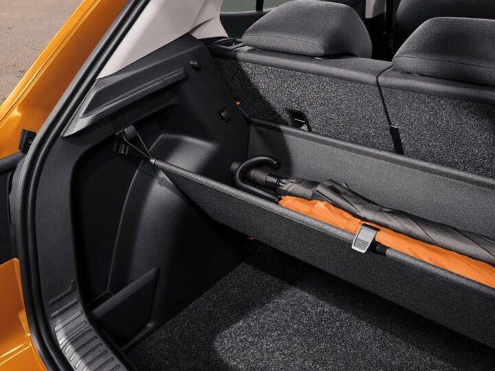En kompakt paraply med sit egen rum i sidedøren, er en klassisk Skoda detalje, som nu er kommet “ned” til Fabia.