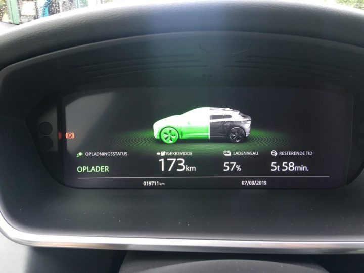 Vi havde sikret os, at vi også kunne anvende en såkaldt mormorlader, jo det var muligt, men tjek selv ladetiderne på de nedenstående billeder, og så skal vi oplyse, at de to såkaldte lynladere er af den mest langsomme type, hvis de skal bære betegnelsen lynlader, de er begge af type 43 kW, ligesom bilen lader med det stik, der kendes som type 2.
