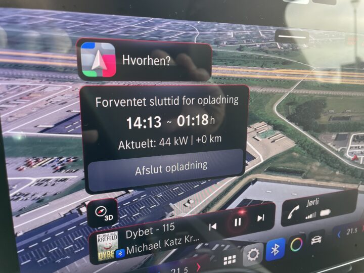 Her er de barske og skuffende realiteter. Vi sidder i en lækker ellert, der kan lade som lyn og torden, og hvad får vi så på en helt almindelig fredag eftermiddag. Sølle 44 kW som det maksimale.