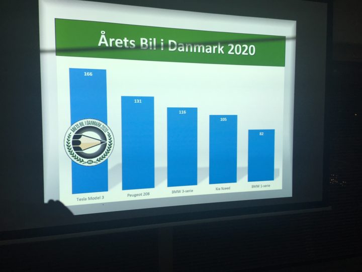 Den nye, mindre og billigere type Tesla er den første el-bil der vinder den danske titel, og Tesla 3 vandt nogenlunde sikkert for den nye Peugeot 208.