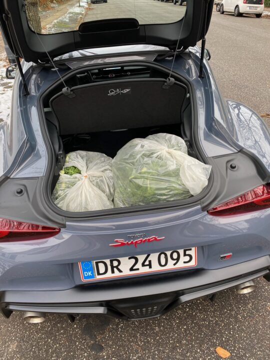 Det giver et anderledes indtryk, når en Supra fotograferes i sne, og det er kort, – det er sport. Akselafstanden er nede på 247 cm, til sammenligning har Porsche Boxter 248 og Porsche 911 245 cm.