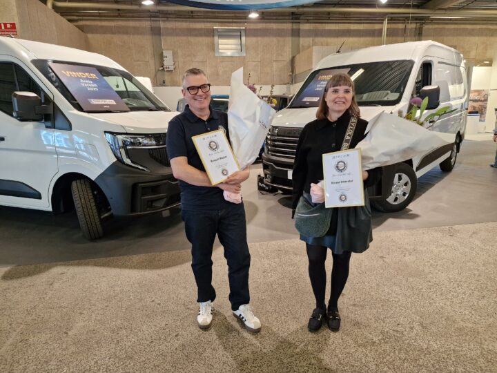 To glade vindere af titlen Årets Varebil i Danmark 2025. Tv. Søren Hyltoft fra Renault og Ann Strøbye fra Nissan.